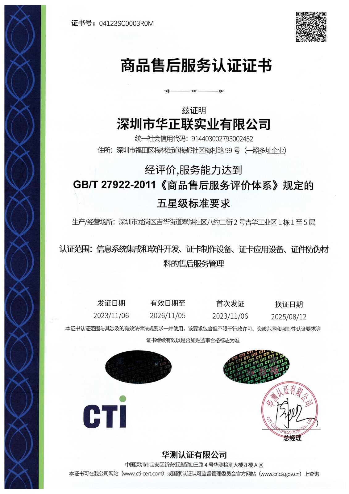 商品售後服務證書