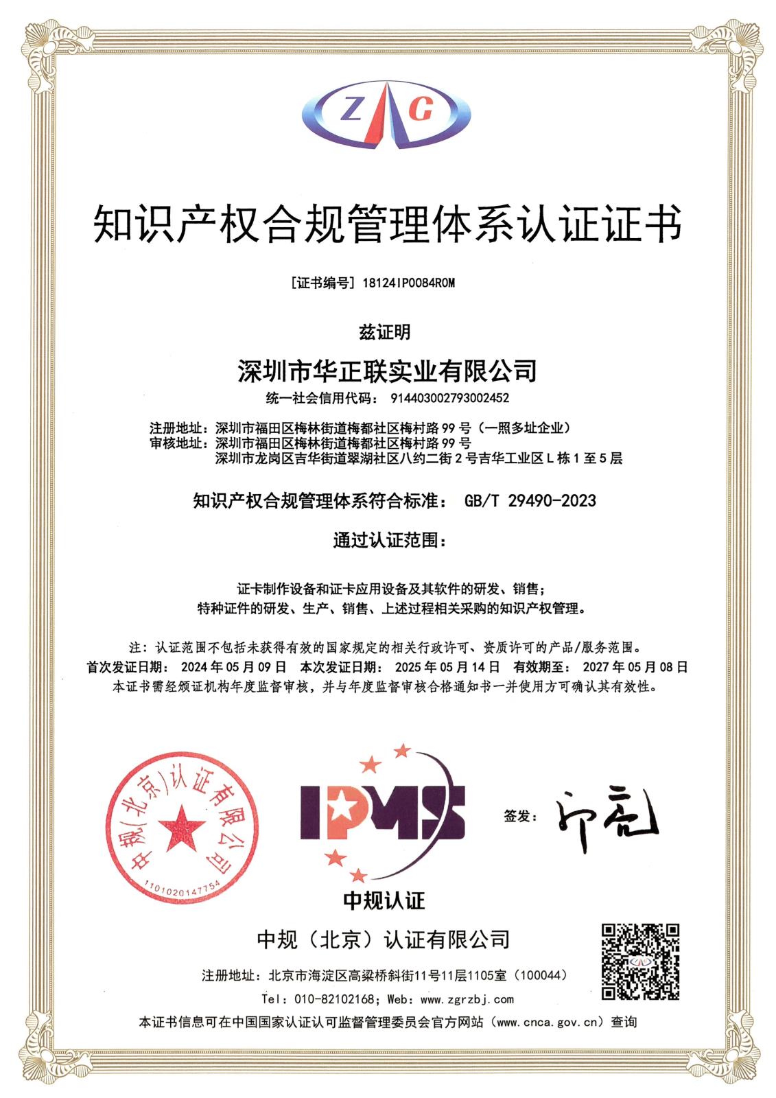 智慧財產權合規管理體系證書